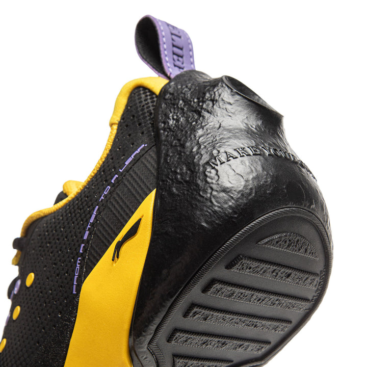 ヒールは月面のクレーターにインスパイアされます。ブラックでデザインされて、イエローの色で飾られます。ウェイドのサインがヒールに配置されています。