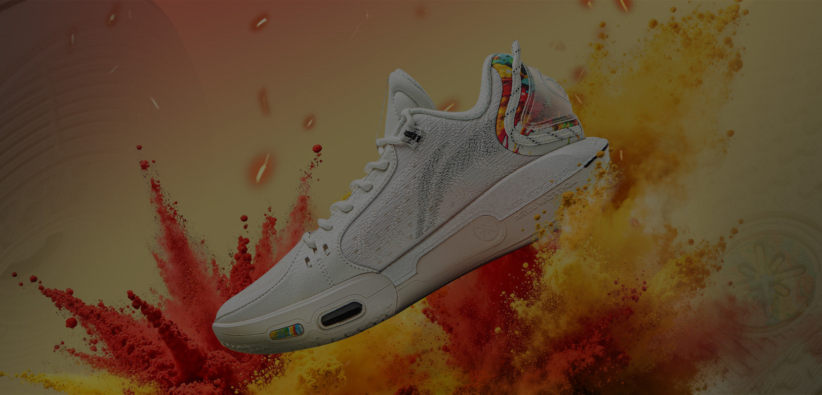 Way of Wadeの要素がアッパー、ヒール、アウトソールに配置されています。左ヒールには「MAKE YOUR OWN WAY」、右ヒールには「CAUSE IT’S HARD」と刻印されて、シリーズの個性を引き立てています。