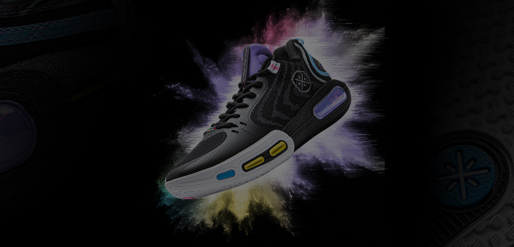 Way of Wadeの要素がアッパー、ヒール、アウトソールに配置されています。左ヒールには「MAKE YOUR OWN WAY」、右ヒールには「CAUSE IT’S HARD」と刻印されて、シリーズの個性を引き立てています。