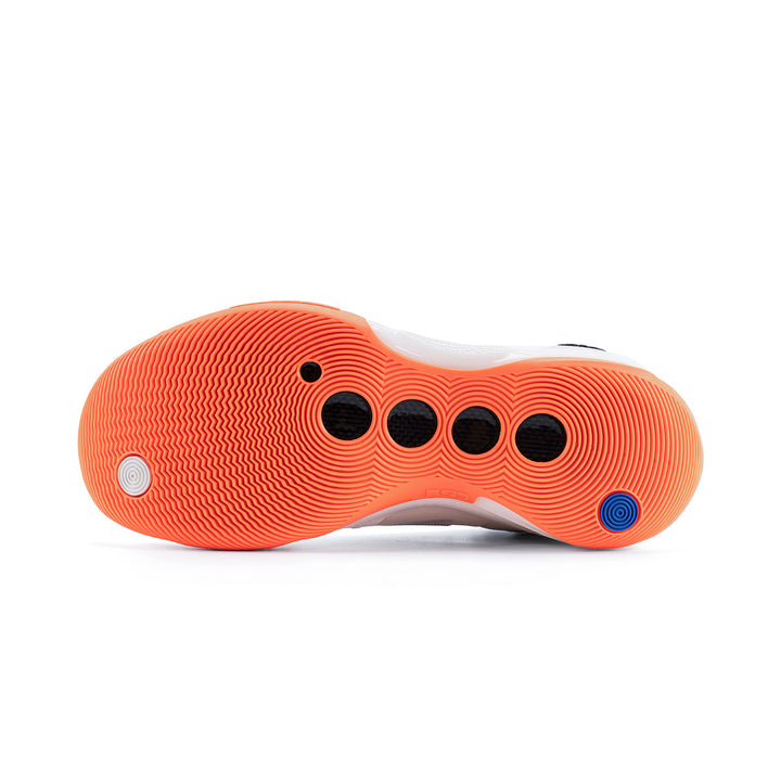 メッシュアッパーで通気性が高く、汗の蒸発が速く、通年快適に使用できます。デザインはホワイトを基調にブルーとオレンジのアクセントを配し、集中力の純粋さとプレッシャー下での精密な瞬間の閃きを表現しています。