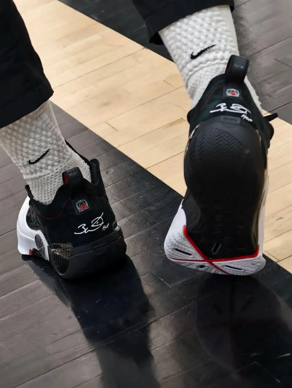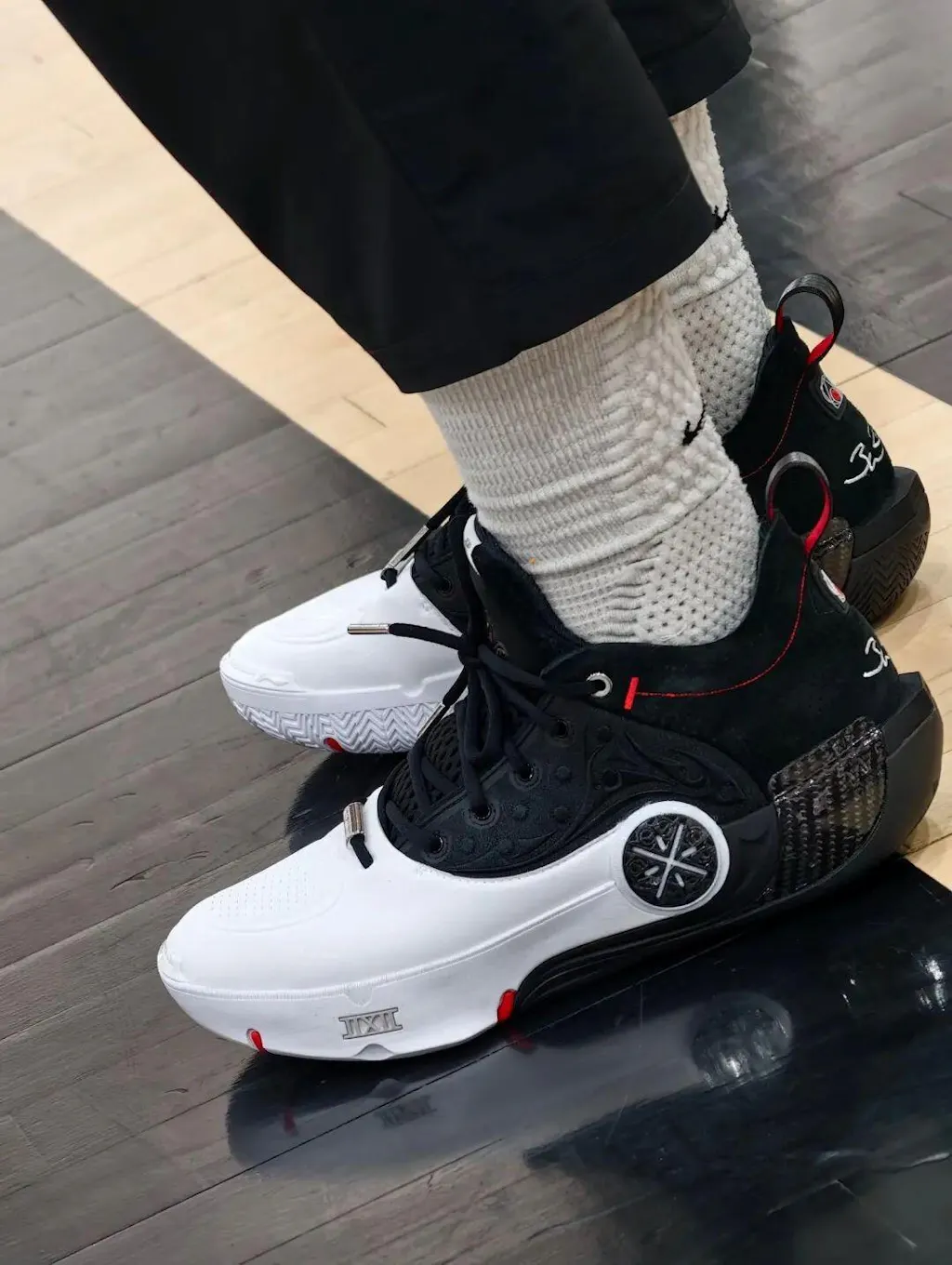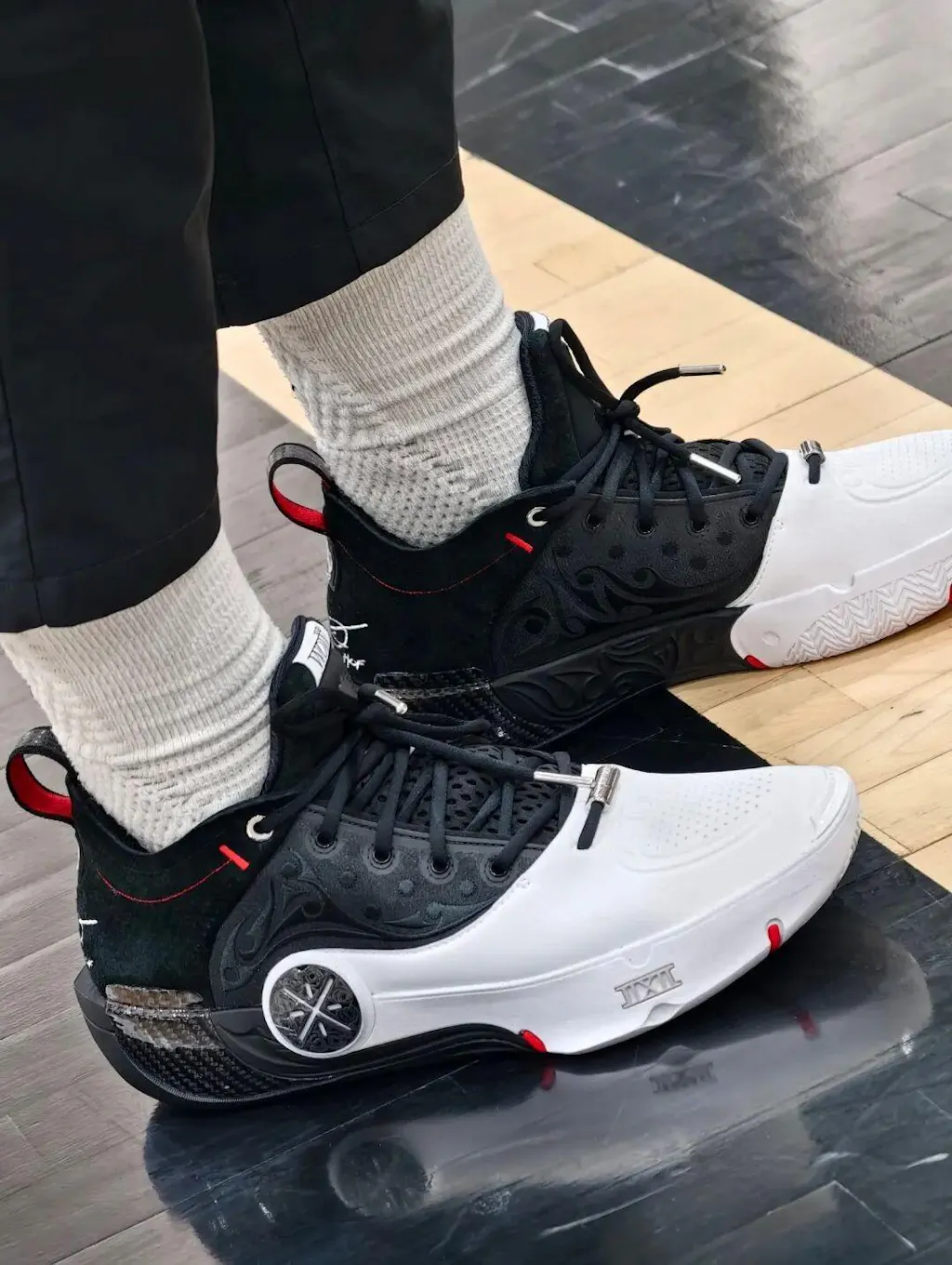 ウェイン・ウェイドの銅像にインスパイアされて、彼の彫刻のような体型とルネサンスアートを融合させています。キャリアの象徴が靴に彫刻されて、クラシックな形とバスケットボールの精神が融合しています。